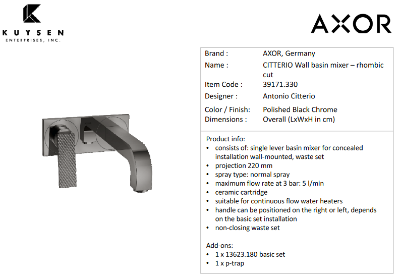 - PRODUCT DESCRIPTION: CITTERIO Wall basin mixer – rhombic cut with 13623.180 basic set