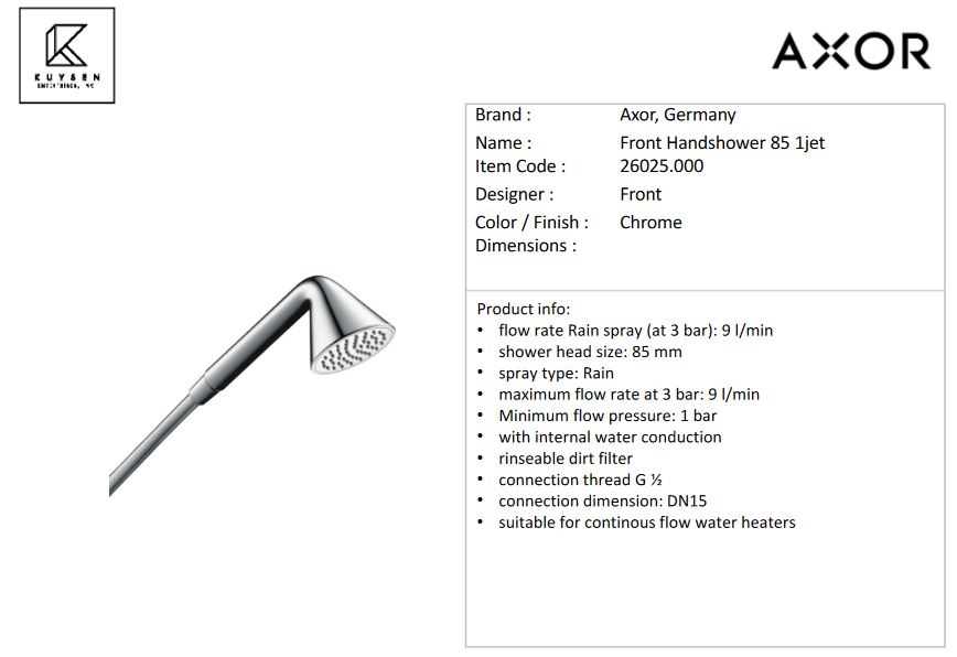 Axor Front Handshower 85 1jet, Chrome 26025.000