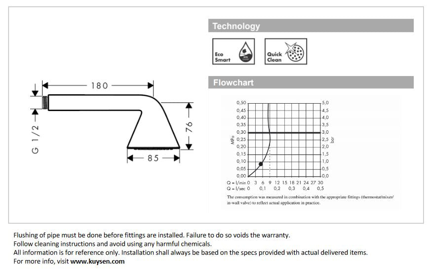 - shower head size: 85 mm