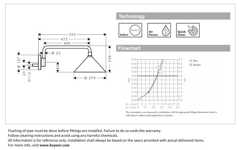 - shower head size: 279 mm