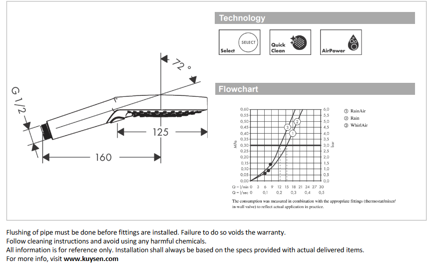 - DIMENSION: 125 mm shower head size