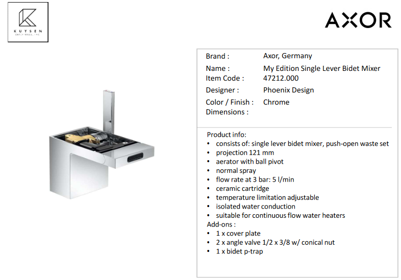 Axor My Edition Single Lever Bidet Mixer, Chrome 47212.000