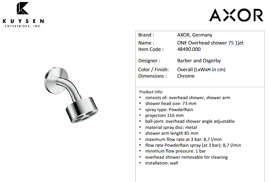 - PRODUCT DESCRIPTION: overhead shower 75 1jet EcoSmart with shower arm