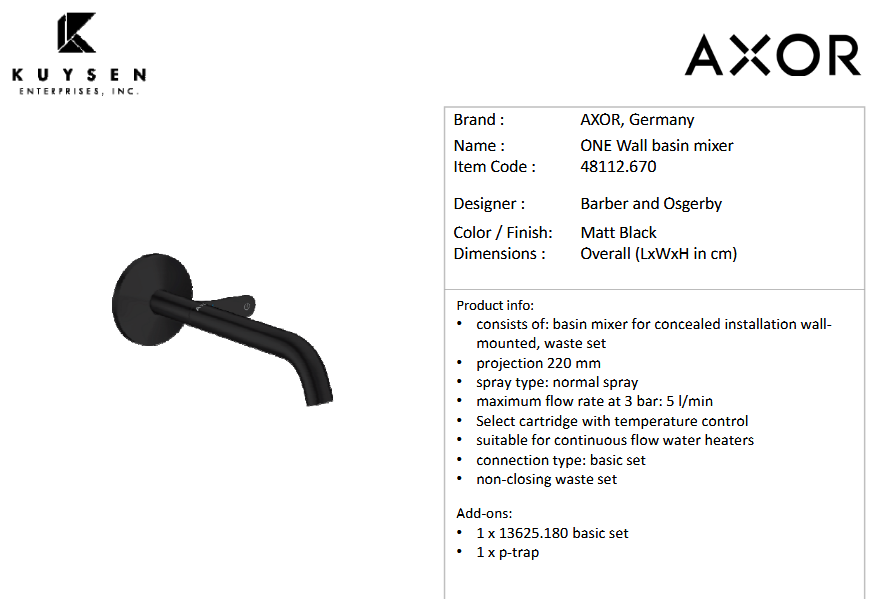 - PRODUCT DESCRIPTION: wall basin mixer Select lever handle with escutcheon with non-closing waste set (inclusive of 13625.180 basic set)