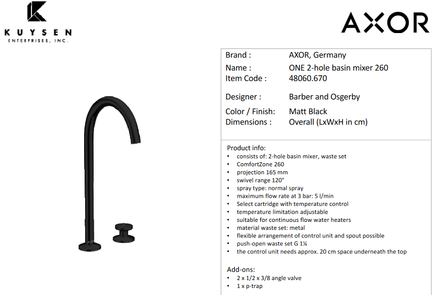 Axor One Select 2hole basin mixer Select260 Matt Black 48060.670
