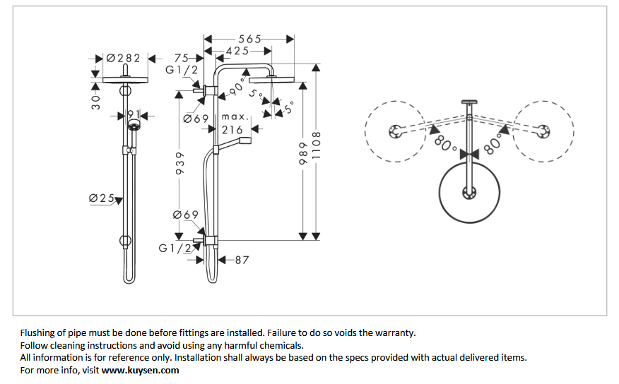 - PRODUCT DESCRIPTION: showerpipe 280 1jet connect-type installation (inclusive of 48798.180 basic set) required : bath/shower mixer of choice