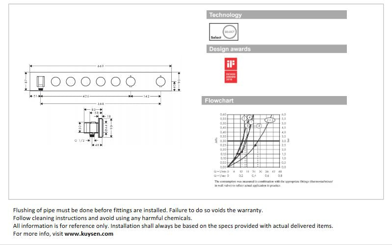 - depending on volume flow and installation situation approx. 50% flow rate reduction and integrated shut off function