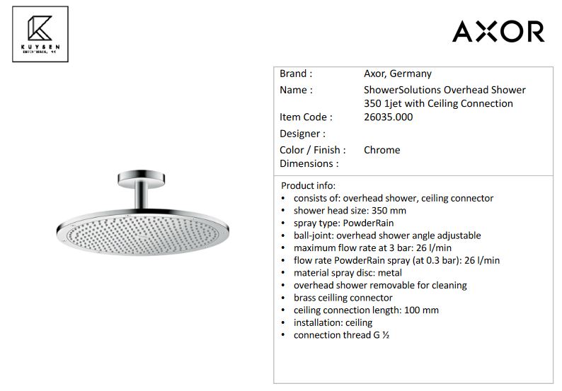 Axor Shower Solutions overhead shower 350 1jet , Chrome 26035.000