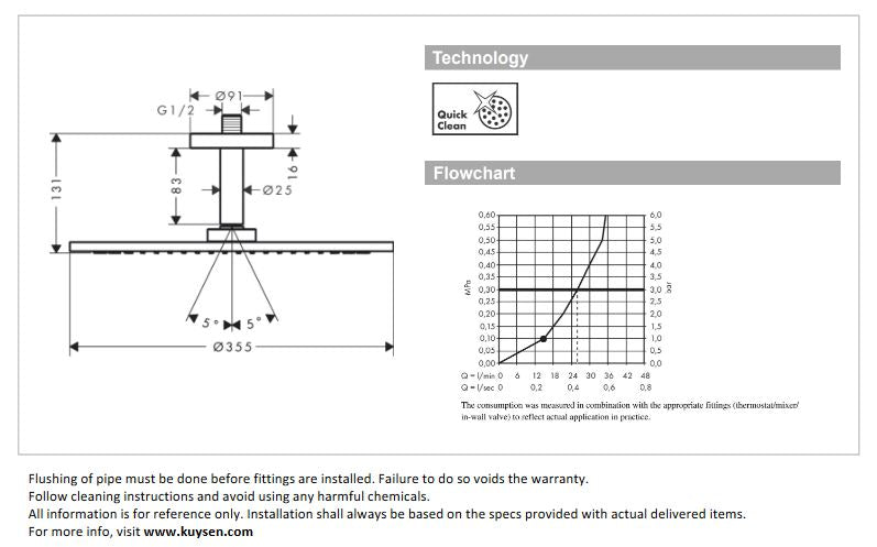 - ShowerSolutions Overhead Shower 350 1jet with Ceiling Connection