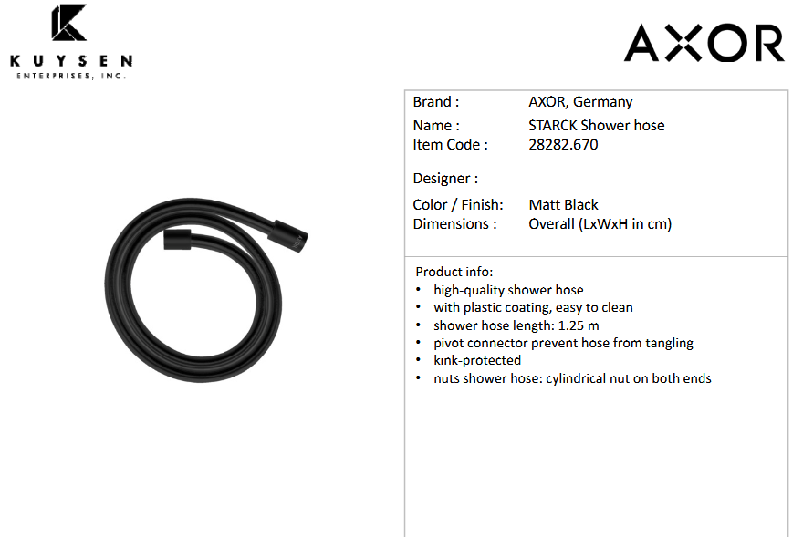 Axor Starck isiflex hose 1250mm matt blk 28282.670