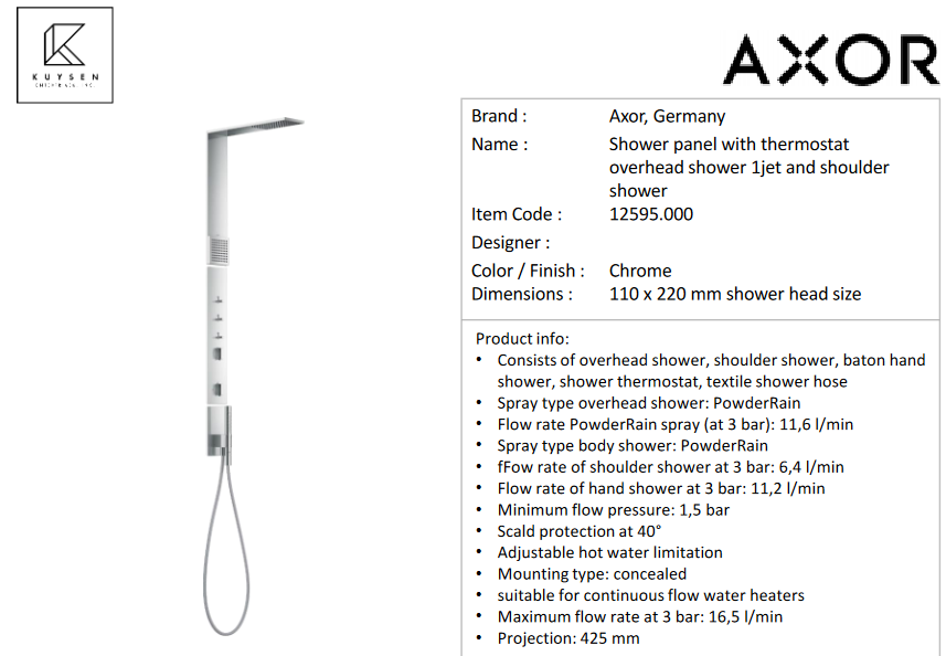 - PRODUCT DESCRIPTION: Shower panel with thermostat overhead shower 1jet and shoulder shower inclusive of 12676.180 basic set