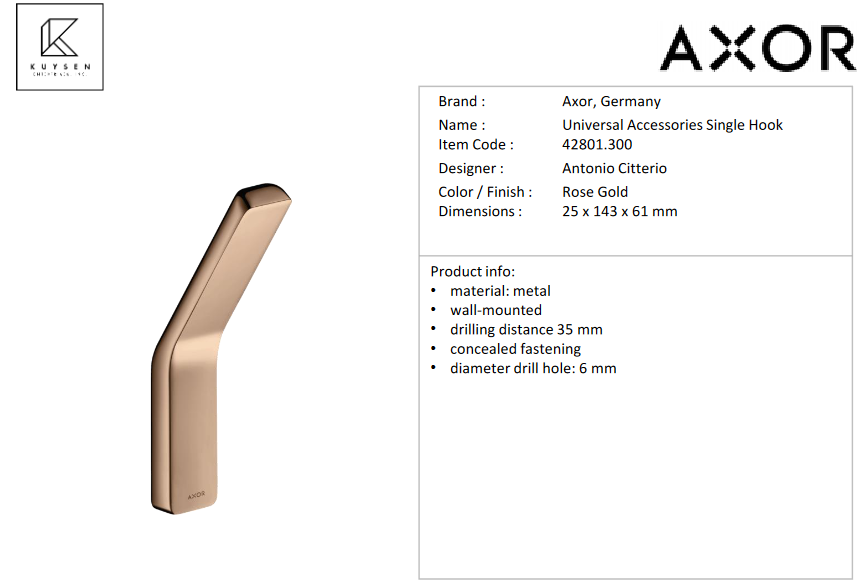 - PRODUCT DESCRIPTION: Universal Accessories Single Hook