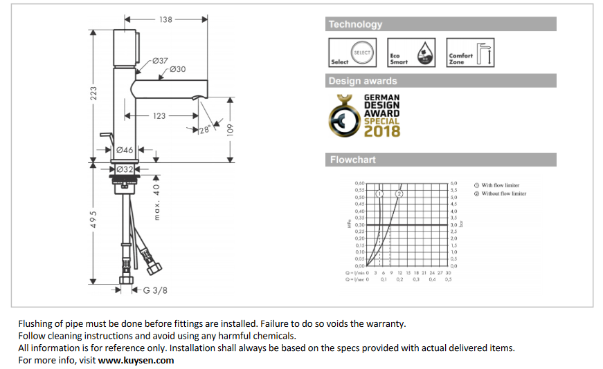 - 2 x angle valve 1/2 x 3/8 w/ conical nut
