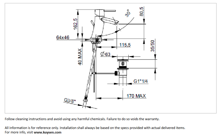 - DIMENSIONS: 162.5 mm Height, 156 mm Spout projection