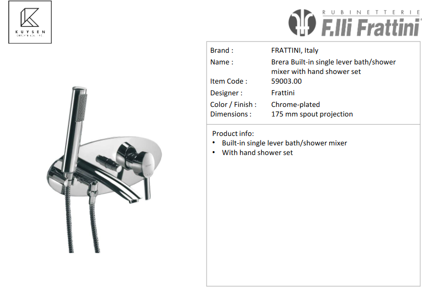 Frattini Brera Built-in Bath/Shower + Handshower w/ Plate 59003.00