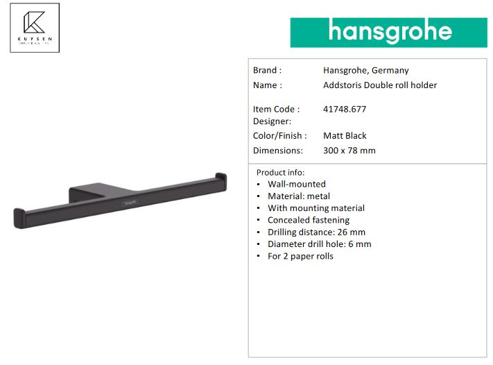 Hansgrohe AddStoris Double roll holder, Matt Black 41748.677