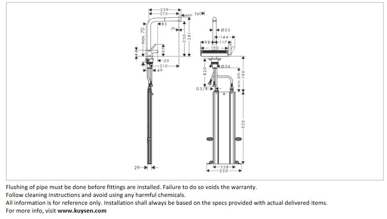 - PRODUCT DESCRIPTION: consists of: single lever kitchen mixer, hose box, multifunctional strainer • ComfortZone 250 • l‐spout ∙ swivel range adjustable in 3 steps 60°, 110° or 150° • laminar spray, SatinFlow • change between SatinFlow and pull‐out spout at the touch of a button • MagFit magnetic shower support • maximum flow rate at 3 bar: 6 l/min • ceramic cartridge • connection type: G ⅜ connections • integrated non‐return valve • sBox for quiet, smooth and protected hose guidance in the cabinet, under the countertop • extension length up to 76 cm • tap hole with Ø 35 mm required, recommendation: the middle of tap