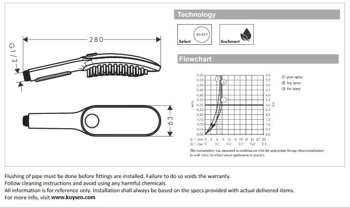 - DIMENSIONS: 150 x 63 mm Shower head size