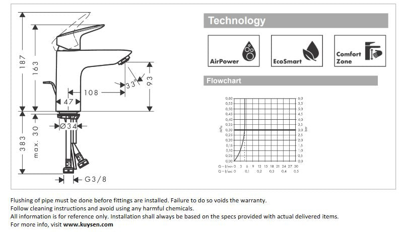 - DIMENSION: 108 mm Projection, 93 mm spout height