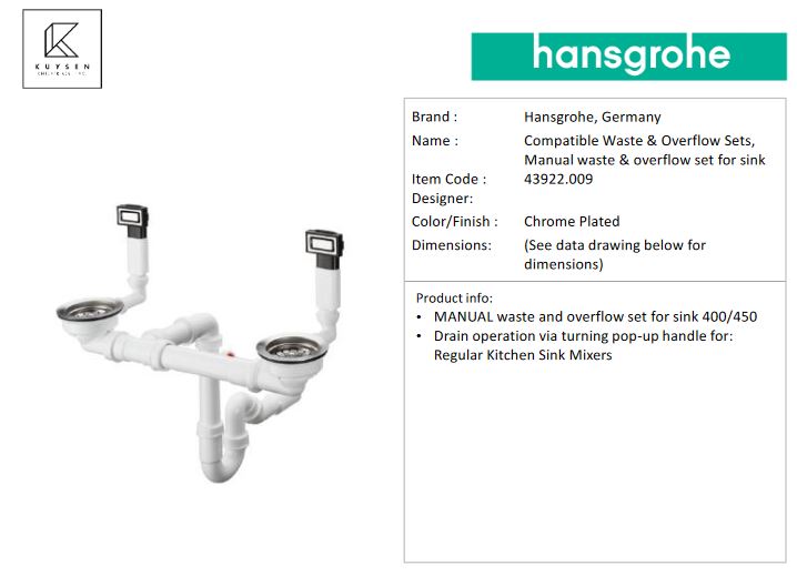 Hansgrohe Manual waste and overflow set for sink 370/370 43922.009