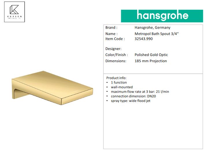 Hansgrohe Metropol bath spout 3/4" pol.gold optic 32543.990