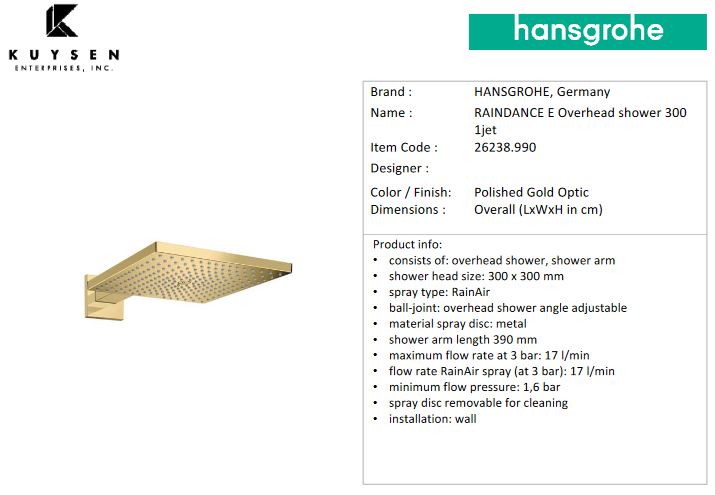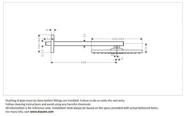 - PRODUCT DESCRIPTION: RD E300 1jet 300 x 300mm, with 390mm wall arm- RainAir