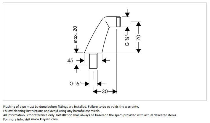 Hansgrohe Pillar unions for deck-mounting of Exposed bath/shower mixer 14920.000