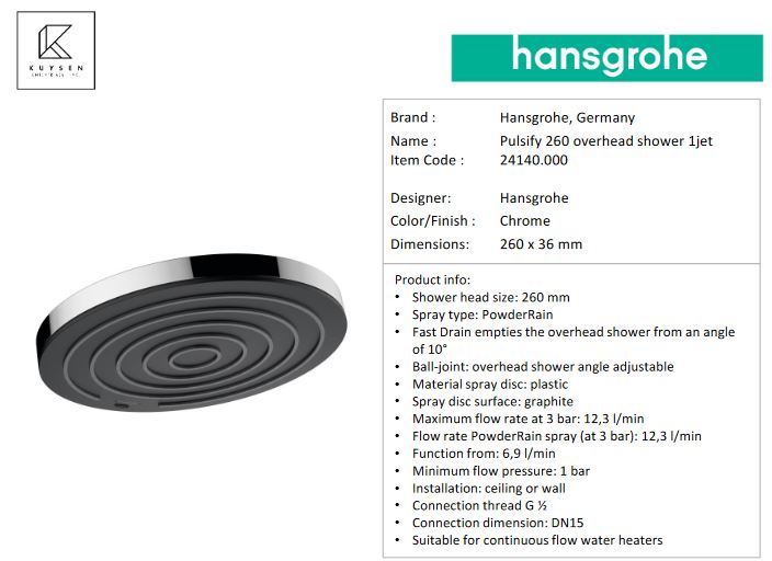 Hansgrohe Pulsify overhead shower 260 1jet 24140.000