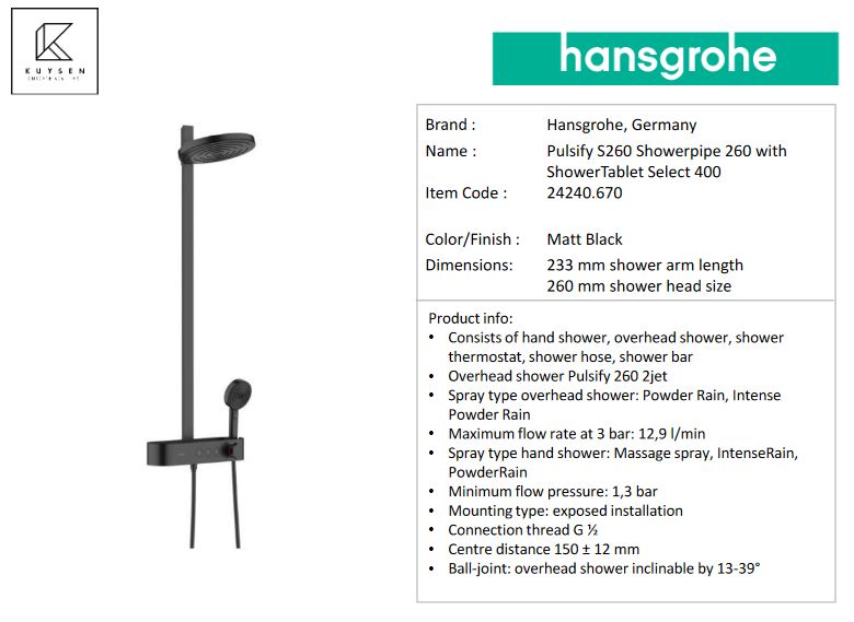 - PRODUCT DESCRIPTION: Pulsify S260 Showerpipe 260 with ShowerTablet Select 400