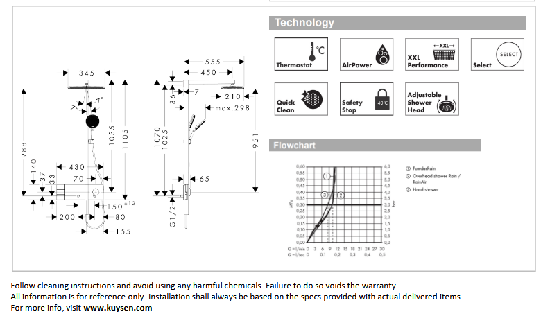 - DIMENSIONS: Shower head size: 214 x 343 mm