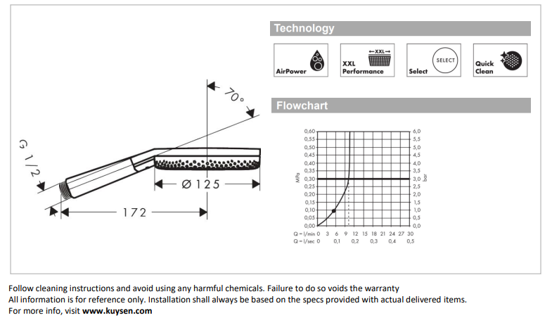 - DIMENSIONS: Shower head size: dia. 125 mm