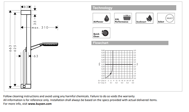 - DIMENSIONS: shower head size: 125 mm, pipe height: 663 mm