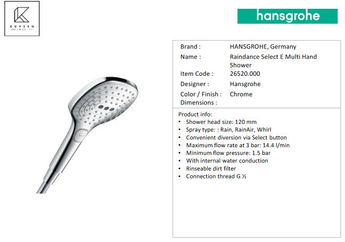 Hansgrohe Raindance Select 120 3jet handshower 26520.000