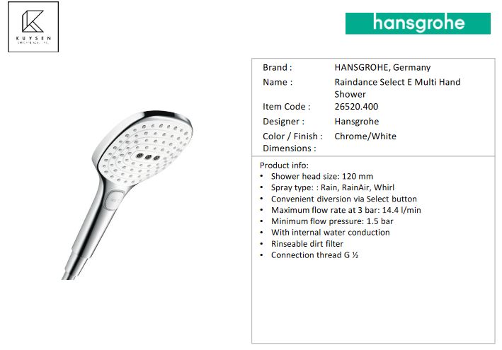 Hansgrohe Raindance Select 120 3jet handshower 26520.400