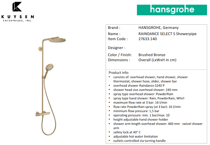 Hansgrohe RD Select S240 1jet PowderRain showrpipe 27633.140