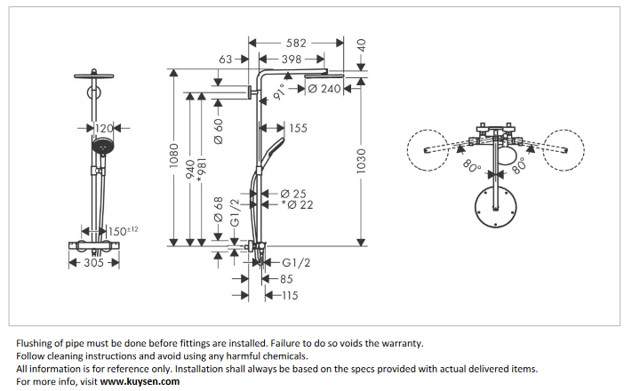 - PRODUCT DESCRIPTION: RD Select S Showerpipe 240 1jet P with thermostat - PowderRain