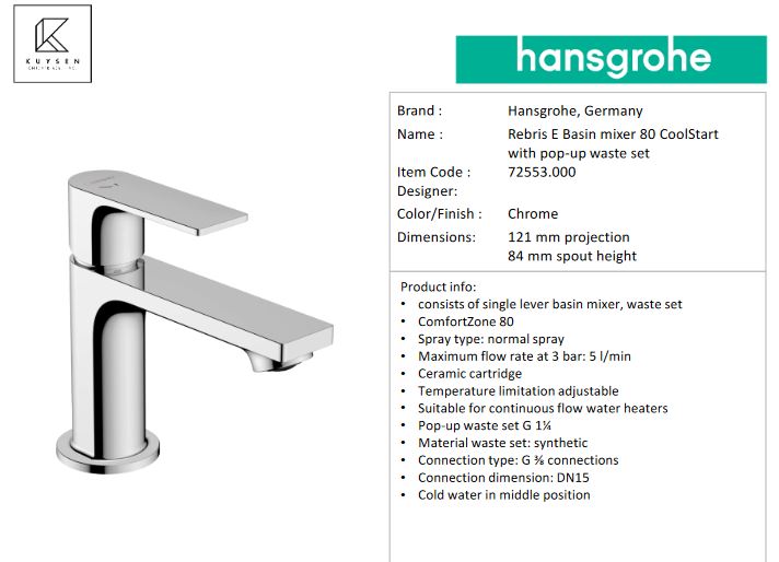 - PRODUCT DESCRIPTION: basin mixer 80 CoolStart with pop up waste set