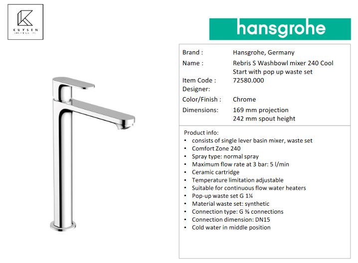 Hansgrohe Rebris S basin mxr 240 coolstart p.u. 72580.000