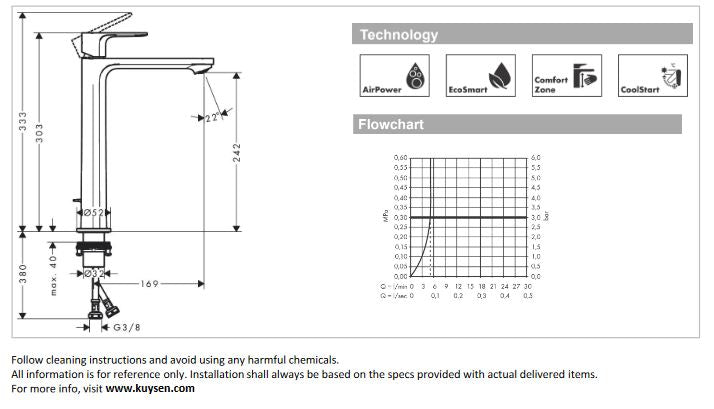 - DIMENSIONS: 169 mm projection, 242 mm spout height