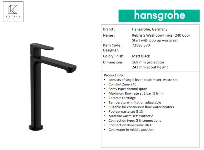Hansgrohe Rebris S basin mxr 240 coolstart p.u. 72580.670