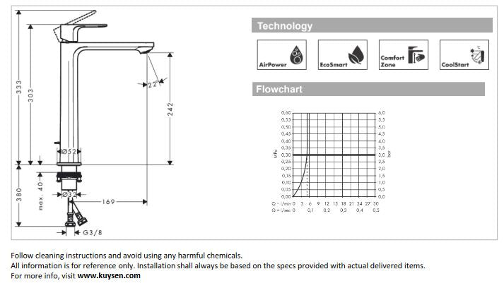 - PRODUCT DESCRIPTION: washbowl mixer 240 CoolStart with pop up waste set