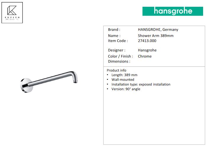 - PRODUCT DESCRIPTION: Shower Arm 389mm