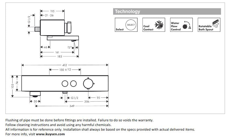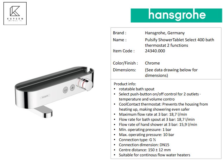 - PRODUCT DESCRIPTION: ShowerTablet Select 400 bath thermostat 2 functions