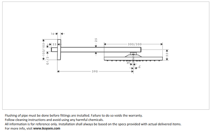 - PRODUCT DESCRIPTION: RD E300 1jet 300 x 300mm with 390mm wall arm- RainAir