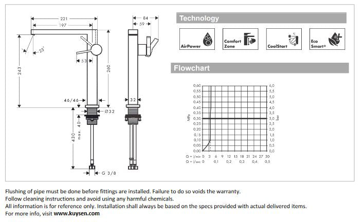 - DIMENSIONS: 197 mm Projection, 243 mm Spout height
