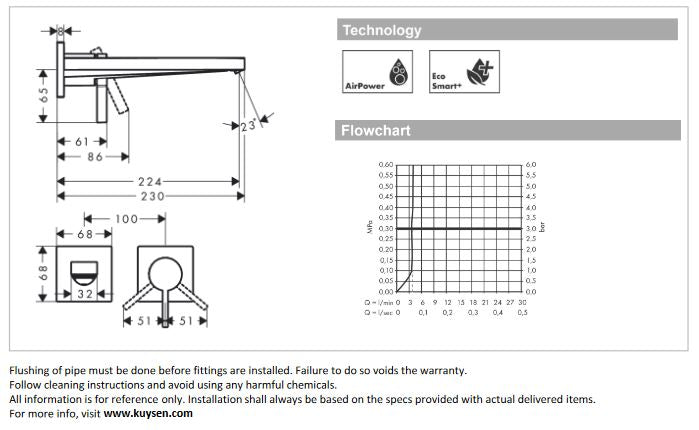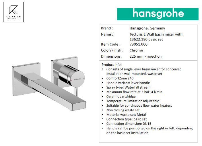 - PRODUCT DESCRIPTION: wall basin mixer 225mm spout with 13622.180 basic set