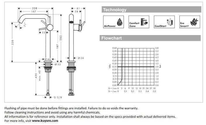 - DIMENSIONS: 167 mm Projection, 230 mm Spout height