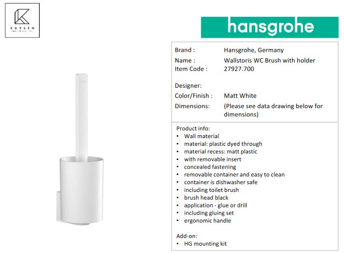 Hansgrohe Wallstoris toilet brush holder white 27927.700