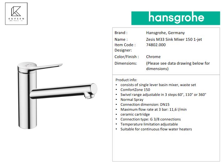 - PRODUCT DESCRIPTION: Zesis M33 Sink Mixer 150 1-jet