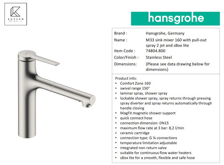 - PRODUCT DESCRIPTION: M33 sink mixer 160 with pull-out spray 2 jet and sBox lite
